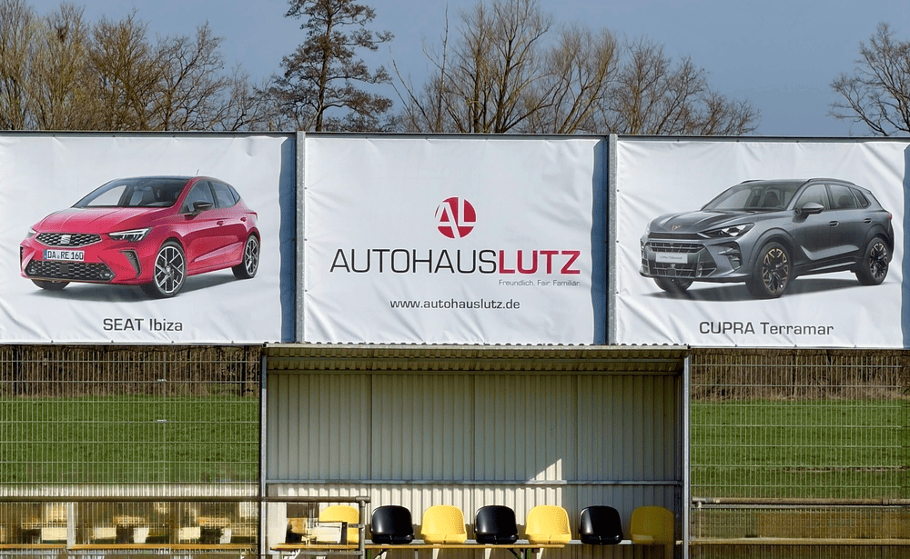 Autohaus Lutz zeigt jetzt auch am Ballfangzaun des SC Adelsdorf Flagge! Wer weiß, vielleicht fangen wir nicht nur Bälle, sondern auch ein paar neugierige Blicke ein.